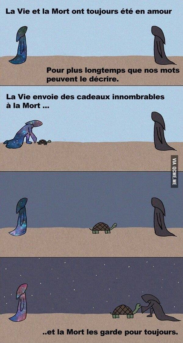 La vie et la mort entretiennent cette relation d'amour de sorte que tout ce que la vie crée, elle l'offre en cadeau à la mort qui va le reprendre.